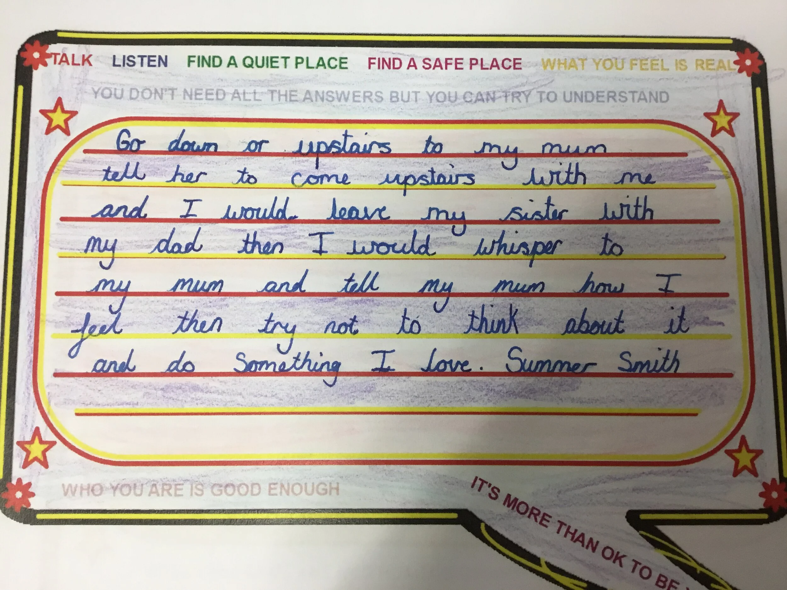 We looked at ways that we can help ourselves and help others if we are finding things difficult.